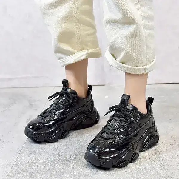 Fashion Women Casual Black Creative Lace-Up Thick Soled Chunky Dad Shoes Sneakers