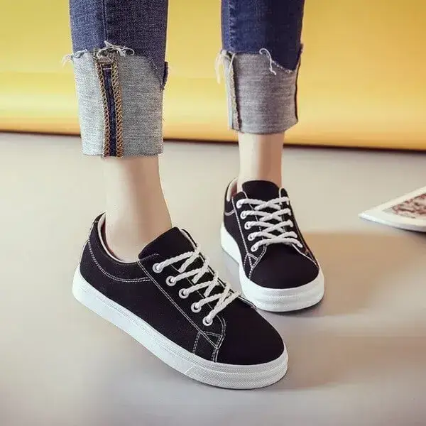 Summer Women Fashion Casual Solid Color Thick-Soled Canvas Sneakers