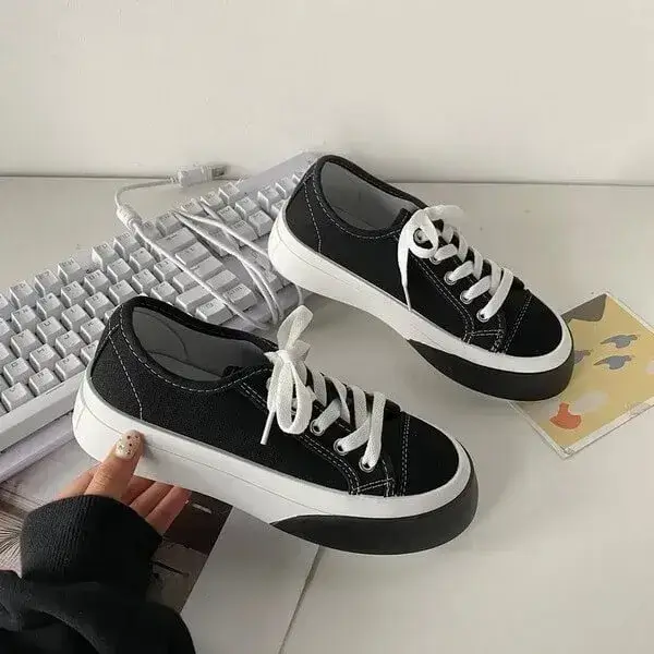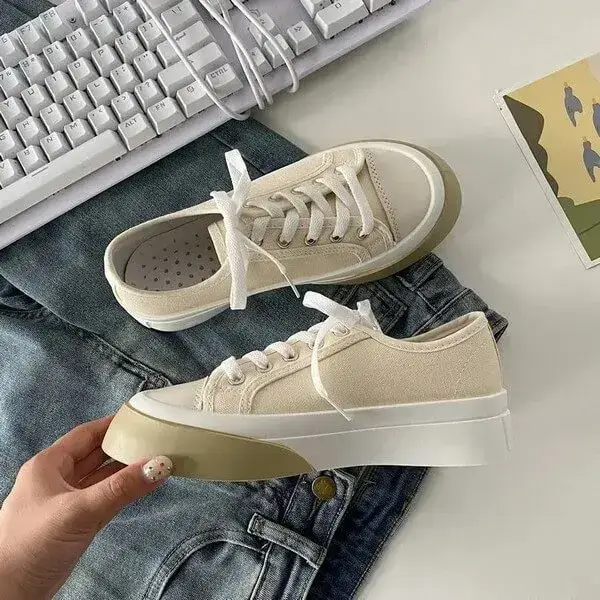Women Fashion Casual Round Toe Lace-Up Color Blocking Low-Top Canvas ShoesN1482