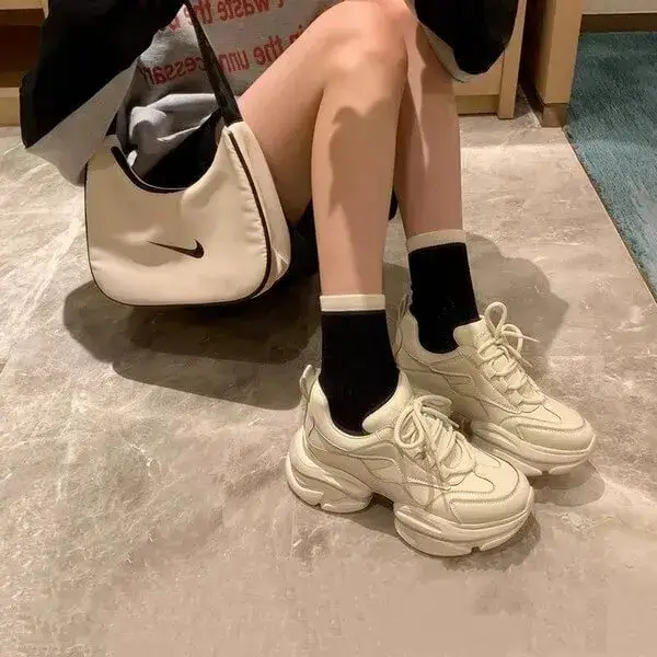 Women Fashion Round Toe Platform Soft Sole Lace-Up Sneakers